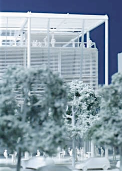 Leitgedanke des Entwurf ist, dass sich eine moderne Demokratie durch seine transparenten Gebäude repräsentiert, die sich nach aussen offen und großzügig zeigen. Die beiden Baukörper, die die unterschiedlichsten Nutzungen wie Repräsentation, Büros, Restauration und Wohnen aufnehmen, bilden ein offenes und lichtdurchflutetes Atrium. die Gebäudestruktur wird durch ein gemeinsames Dach mit Lamellen zur Lichtlenkung und Solarzellen zur Energiegewinnung zu einer Einheit zusammengefasst. Durch seine technische Ausrichtung und Bestückung soll das Dach ein modernes und umweltbewusstes Hessen darstellen.
