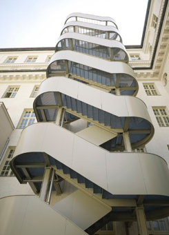 Farben und Materialien sollen dem historischen Gebäude entsprechen aber eine heitere, lichte und moderne Arbeitsumgebung erzeugen.
